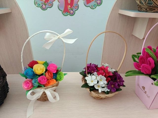 В группе "Дочки-сыночки" состоялась весенняя выставка. Девочки с мамами в очередной раз продемонстрировали свои творческие способности. Какие красивые букеты сделали своими руками - просто загляденье!
